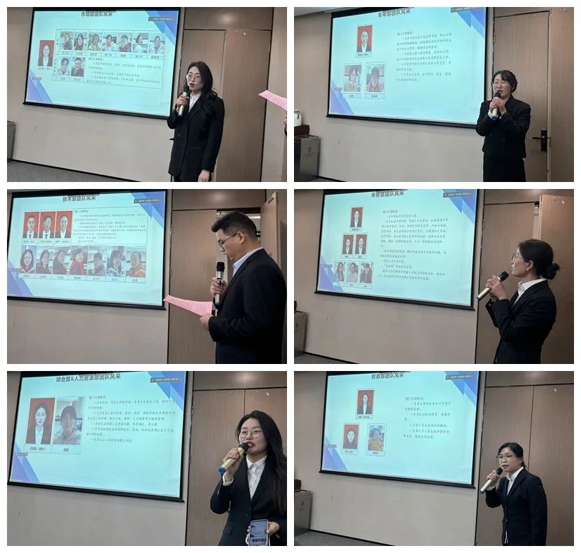 各職能部門負責人依次展示了本部門團隊成員及工作內容。作為認證審核人員的堅強后盾,各職能部門幫助現場審核人員解決技術難題,提供技術支持和解決方案,識別和評估潛在風險,并制定相應的應對措施。每項工作都需各部門的緊密協作,共同完成,以實現公司的整體目標和任務。